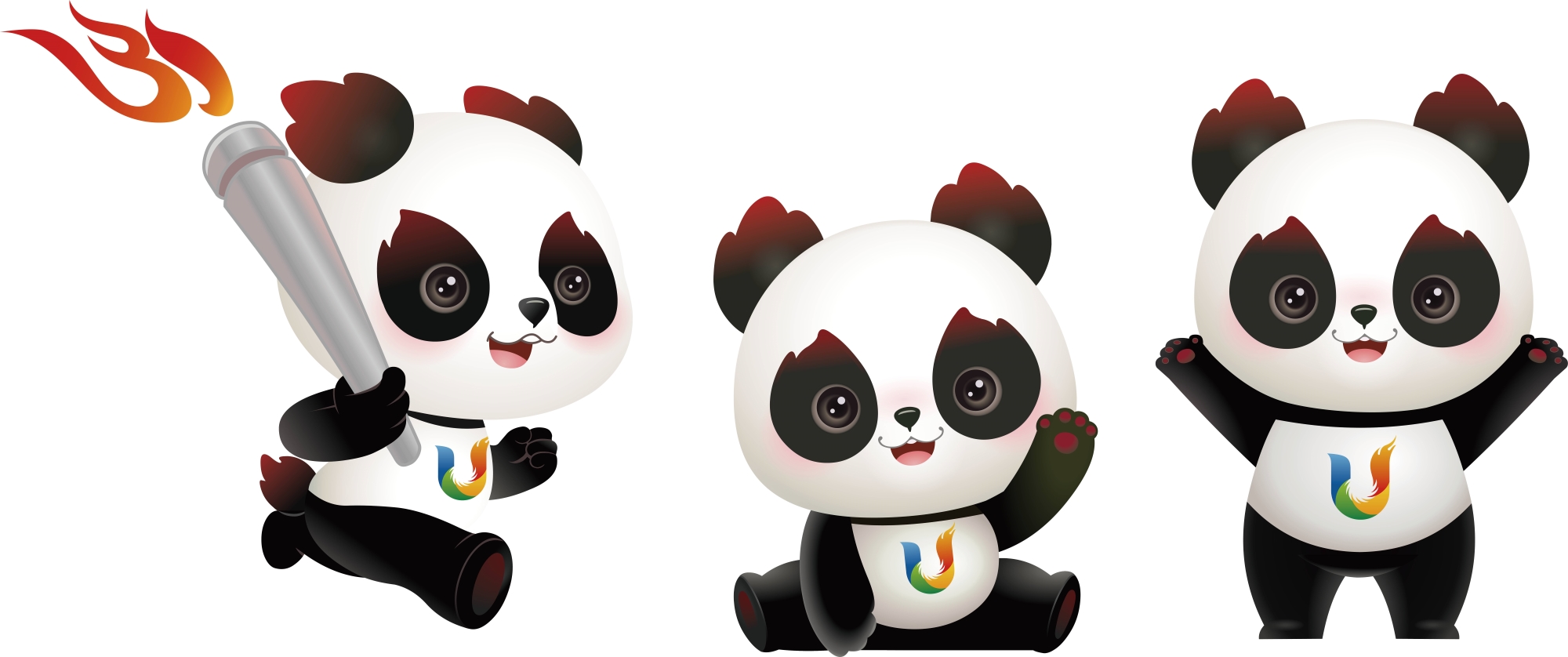 成都大运会吉祥物为一只名叫“蓉宝”的大熊猫,造型呈奔跑姿态,手持“31”字样的大运火炬,耳朵、眼睛、尾巴似火焰形态。
