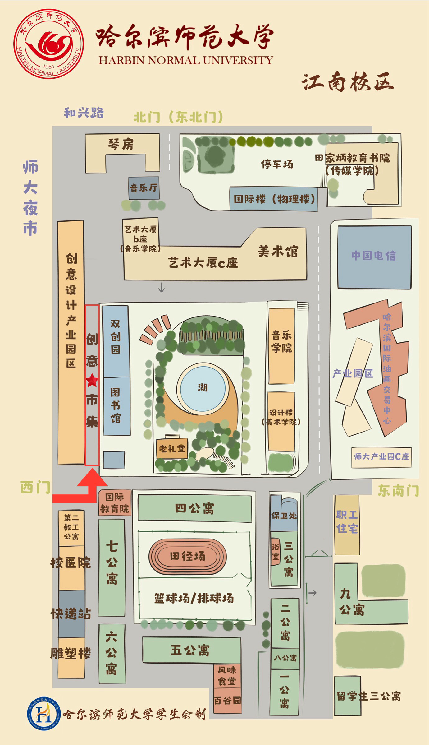 哈尔滨师范大学江南校区校内创意设计产业园区门前临街