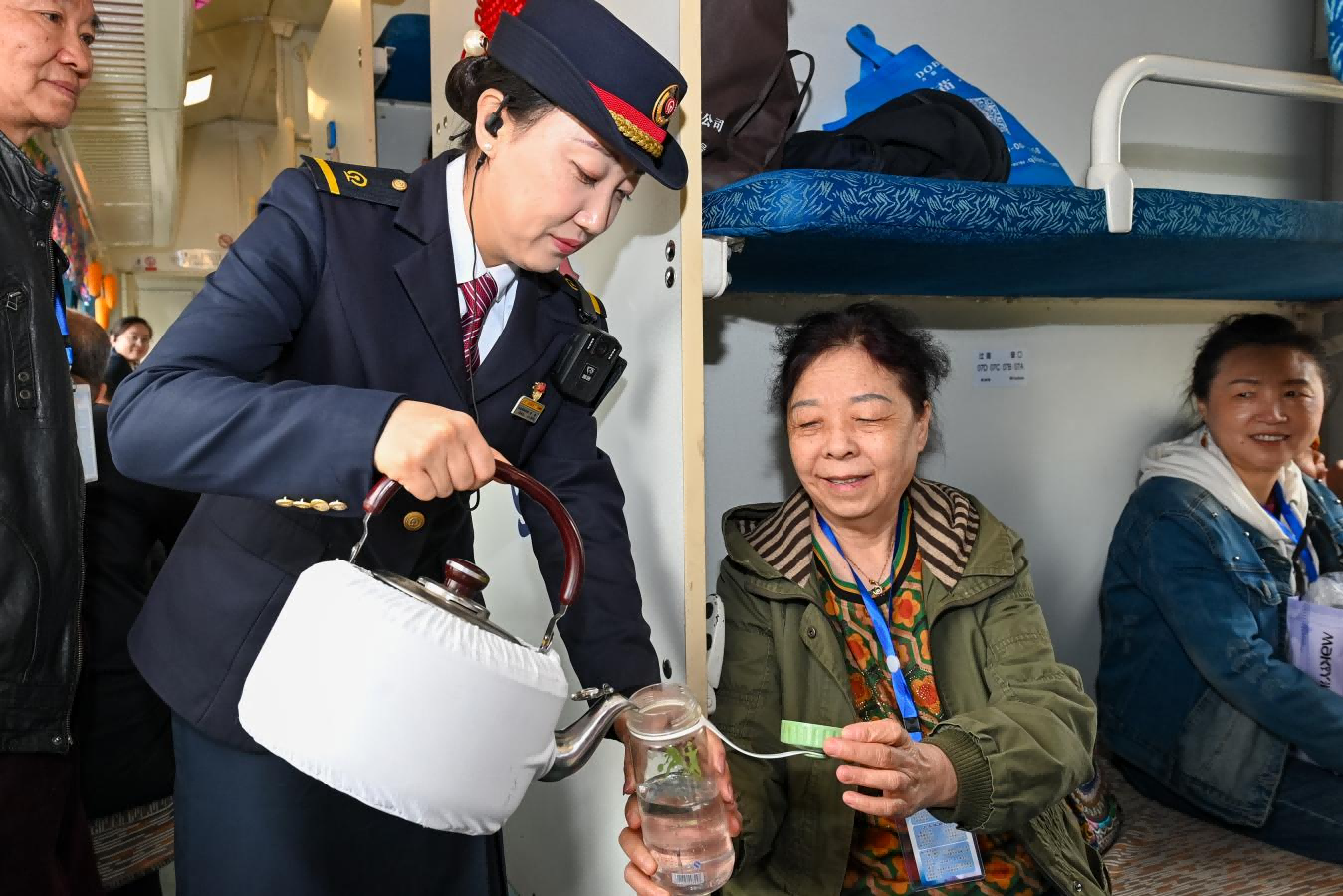 专列抵达瞬间,一场别开生面、气氛热烈的接站仪式即可点燃游客热情。“一下车就感受到浓浓的欢乐氛围,特别有仪式感!”游客们纷纷点赞。从出站那一刻起,亚旅投集团便开启“宠粉”模式:统筹调配车辆,实现全程无缝接送;在大巴车上与旅行社现场分发房卡,还贴心备足一次性雨衣、雨伞等物资。酒店同样“放大招”,公共区域深度清洁,客房用品精心配备、三餐供应品质保障,严格执行高标准服务规范。集团更是严格监督酒店团餐质量,确保菜品干净卫生、营养均衡、烹饪精细。