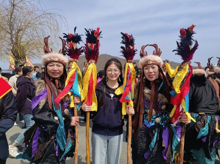 2025 年 5 月 2 日,团队成员姚筱乐参与赫哲族四排乡开江节及萨满祭祀等传统活动,深入记录生态仪式中的文化内涵。开江节现场,赫哲族人以歌舞形式感恩自然馈赠,年轻一代在仪式中重拾对江河的敬畏之心。姚筱乐表示:“非遗不是博物馆里的标本,而是活在生态场景中的生命体。”