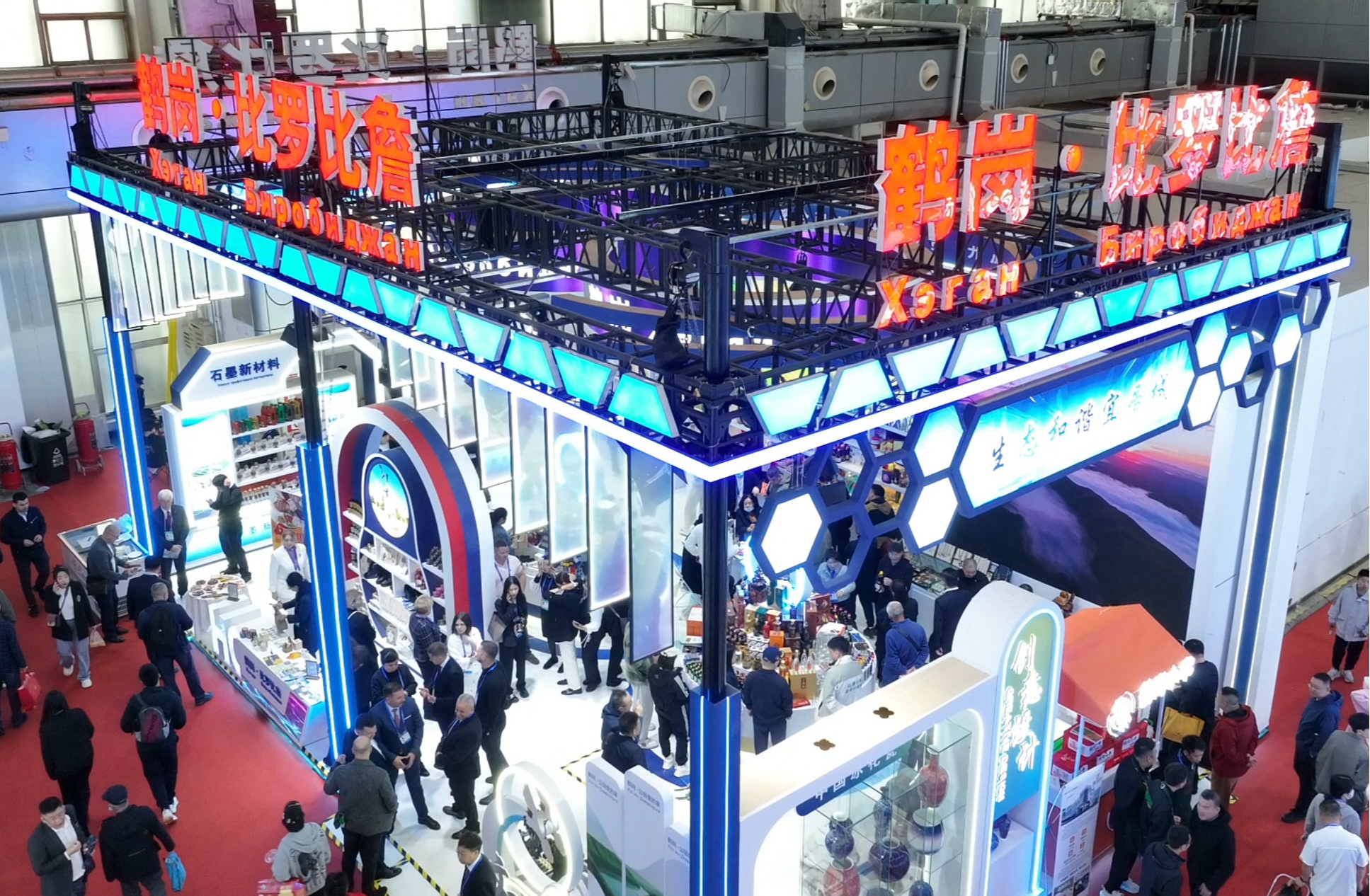 此次哈洽会,鹤岗市精心打造117平方米的形象展区,与俄罗斯比罗比詹市企业联合参展,全方位展示鹤岗在 “四轮驱动” 发展路径下的新成果。