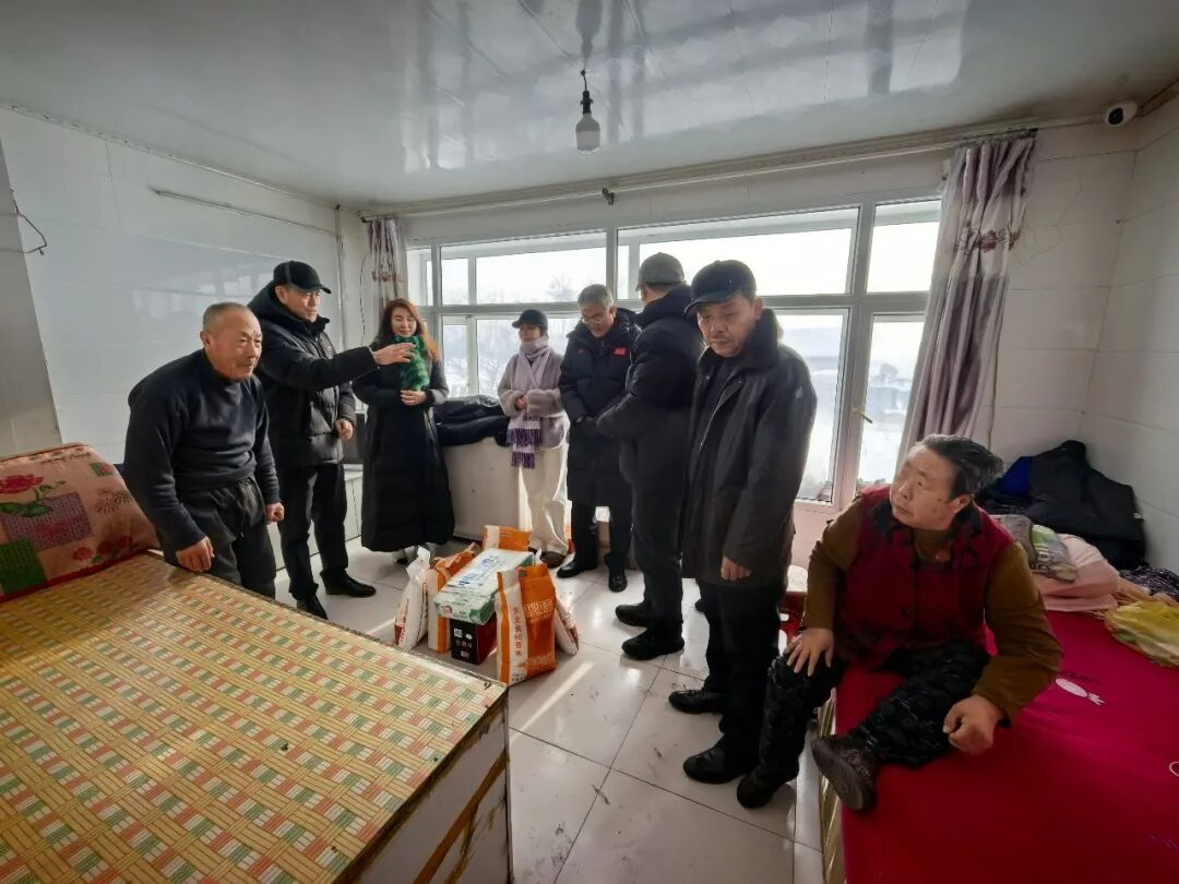 慰问组一行抵达前惠五村后,先后深入驻村工作队驻地、中华民族共同体意识展示馆(满族文化馆)等地点,详细了解工作队生活工作环境和前惠五村民族文化活动开展情况,并与驻村工作队员、村干部进行座谈交流,对基层干部们长期扎根一线、倾力奉献的精神致以崇高敬意,送上了慰问物资,表达组织的温暖与支持。随后,慰问组走访了三户脱贫户,与群众面对面交流,细致询问家庭收入、健康医疗、子女教育及政策落实等情况,鼓励大家保持乐观心态,增强发展信心,在党和政府的政策扶持与社会各界的共同帮助下,稳步提升生活品质。慰问组还送上了米、面、油等生活必需品,以实际行动在严寒时节传递真情暖意。