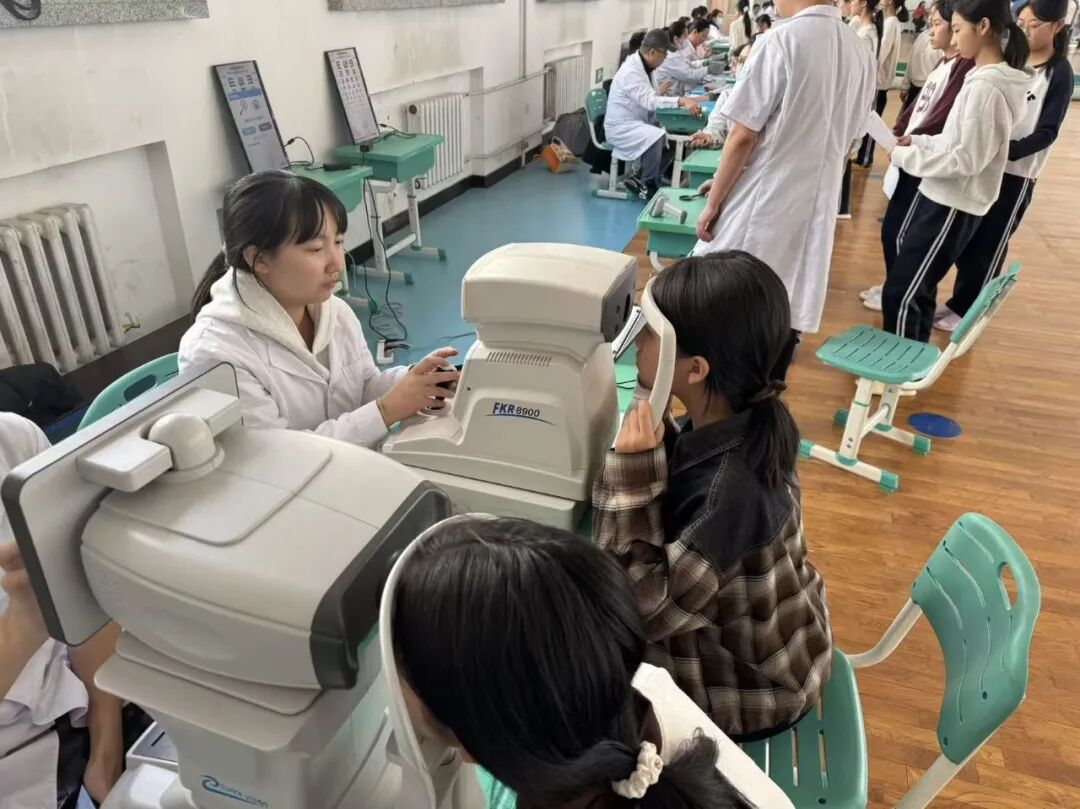 筛查现场,医疗团队严格按照规范流程,为学生们依次进行裸眼视力检测、屈光状态检查、眼外观健康排查等专业检测,耐心细致地记录每一位学生的视力数据。针对视力异常的学生,医护人员现场进行初步诊断,给出个性化护眼建议与矫正指导,并将详细检测结果整理归档,同步反馈给学校与家长,方便后续跟进干预。通过“入校一站式”服务,真正打通青少年眼健康服务“最后一公里”,实现早监测、早预警、早干预,从源头降低青少年近视发生率。