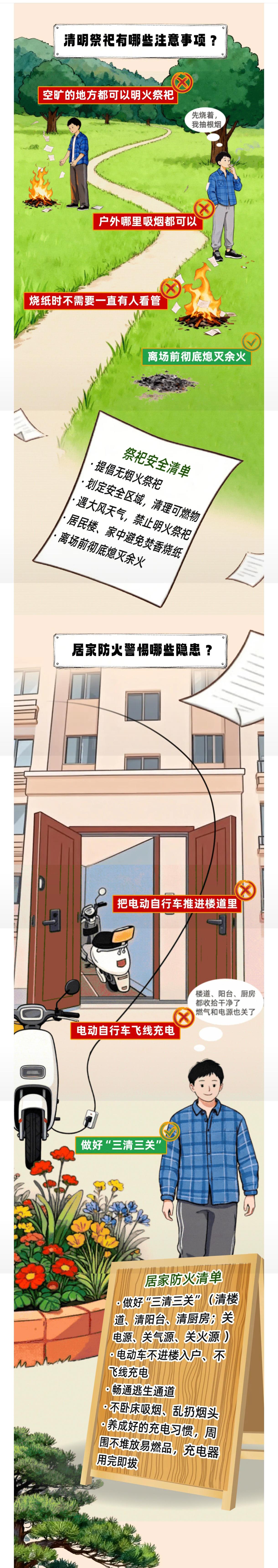 提倡无烟火祭祀;划定安全区域,清理可燃物;遇大风天气,禁止明火祭祀;居民楼、家中避免焚香烧纸;离场前彻底熄灭余火。