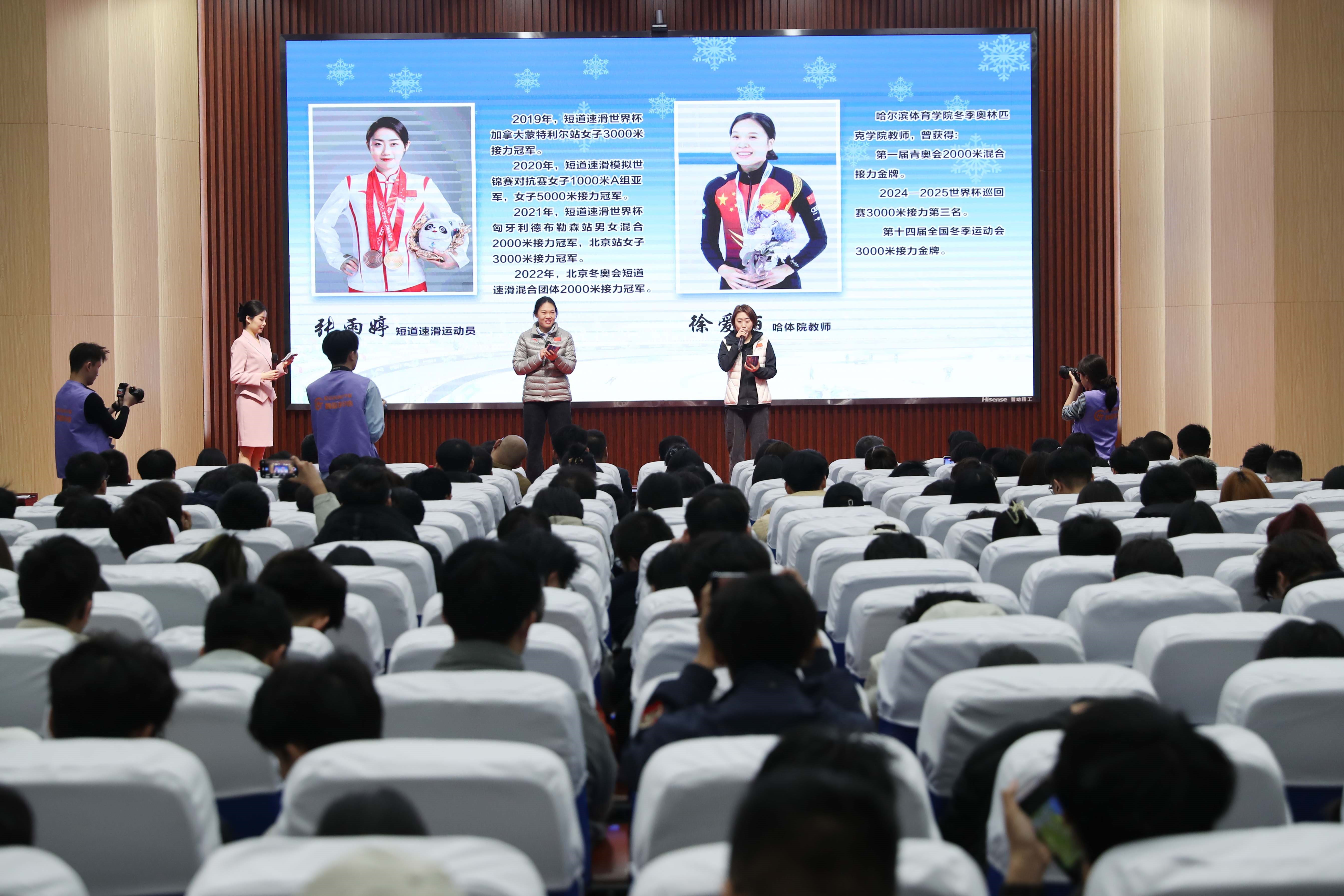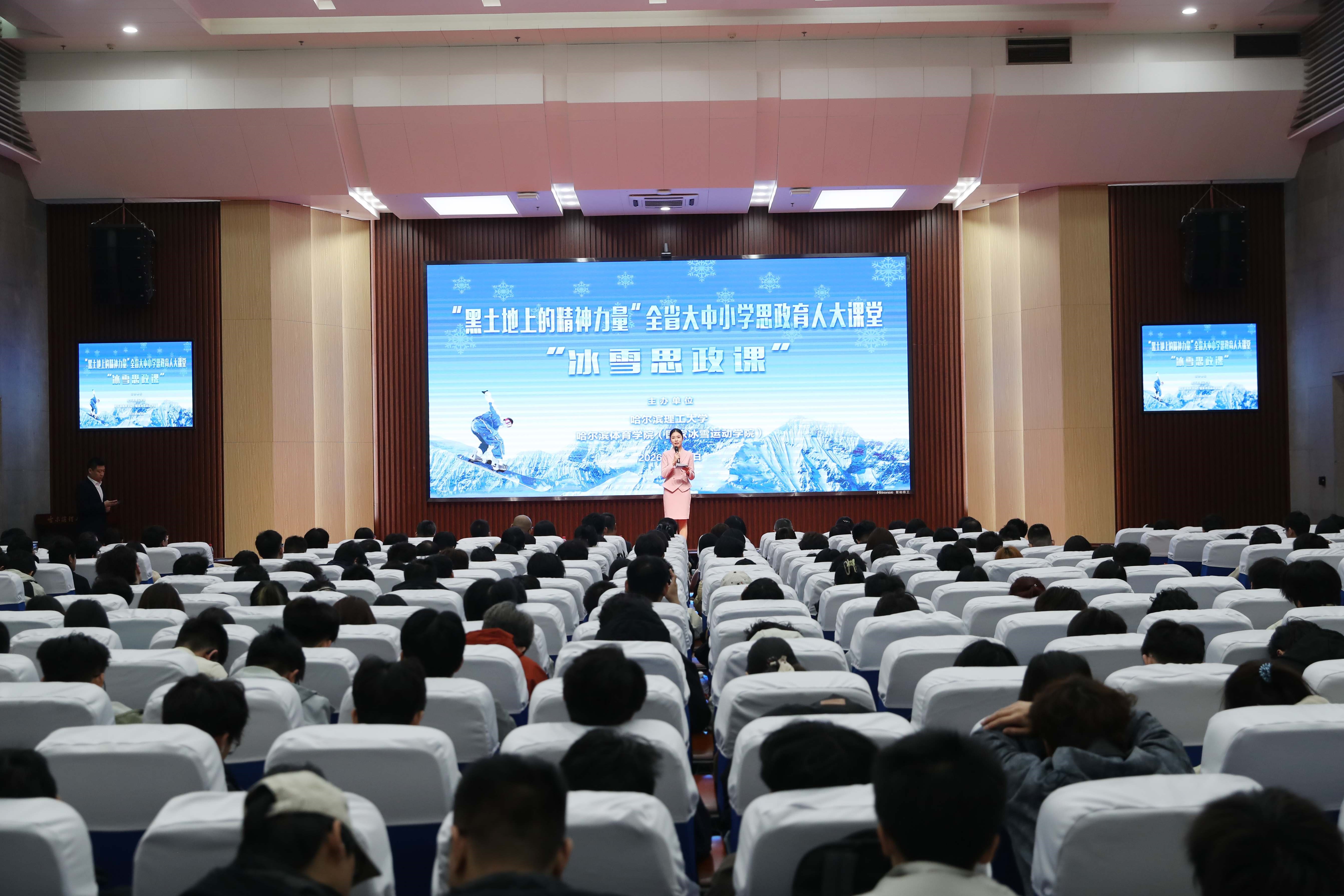 据悉,“燃情冰雪砥砺报国志 接续奋斗筑梦新征程”冰雪思政课是哈尔滨体育学院“冰雪思政”讲师团以冬季项目世界冠军的奋斗事迹为蓝本,精心打造的一堂将宏大叙事与沉浸体验深度融合的冰雪主题思政课。课程作为黑龙江省委教育工委、省教育厅主办“黑土地上的精神力量”全省大中小学思政育人大课堂首场课程,于今年1月首次展演,中央及省级主流媒体广泛报道,获得现象级反响。本次“冰雪思政课”活动是该课程在全省首演后,首次进入高校为师生授课。