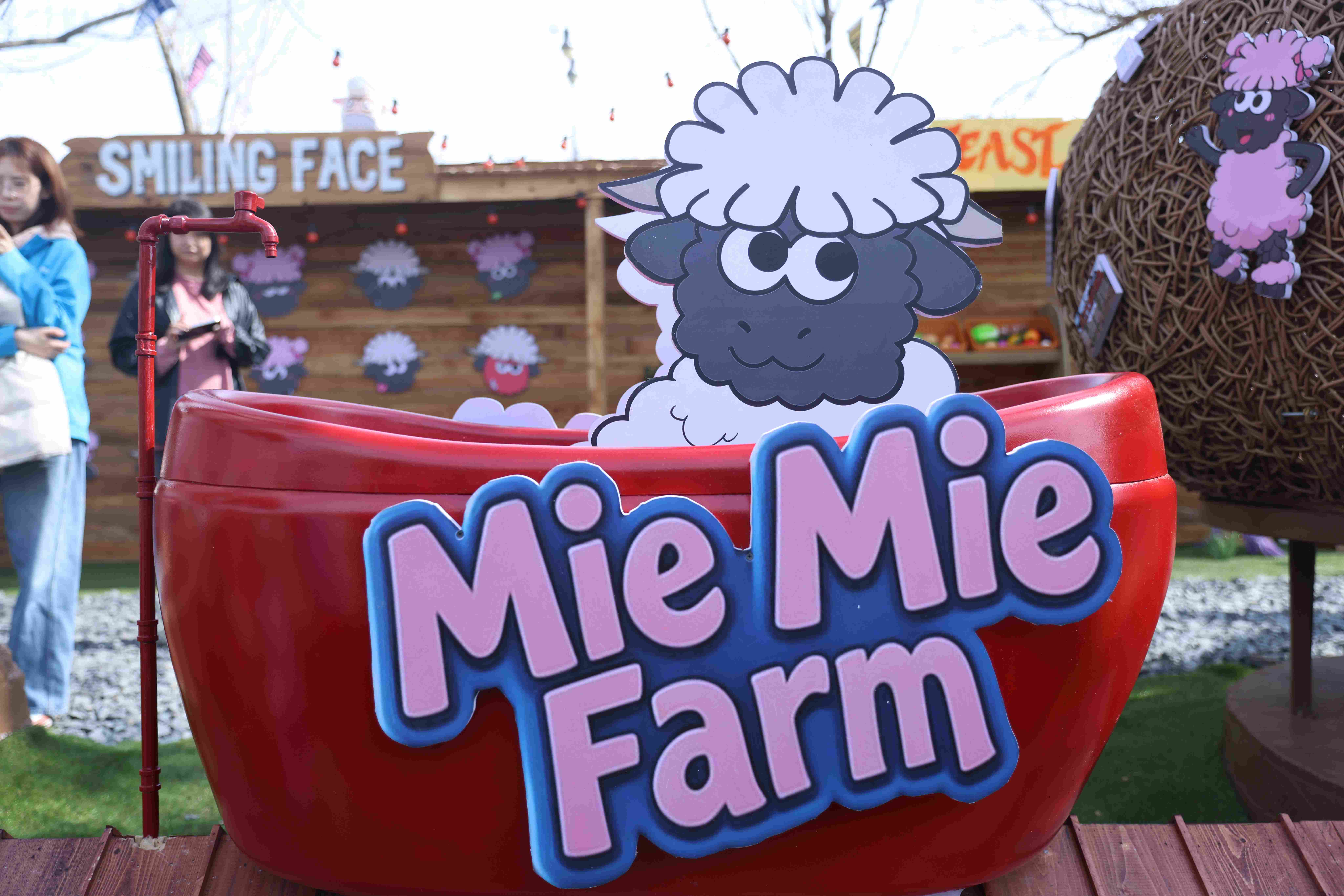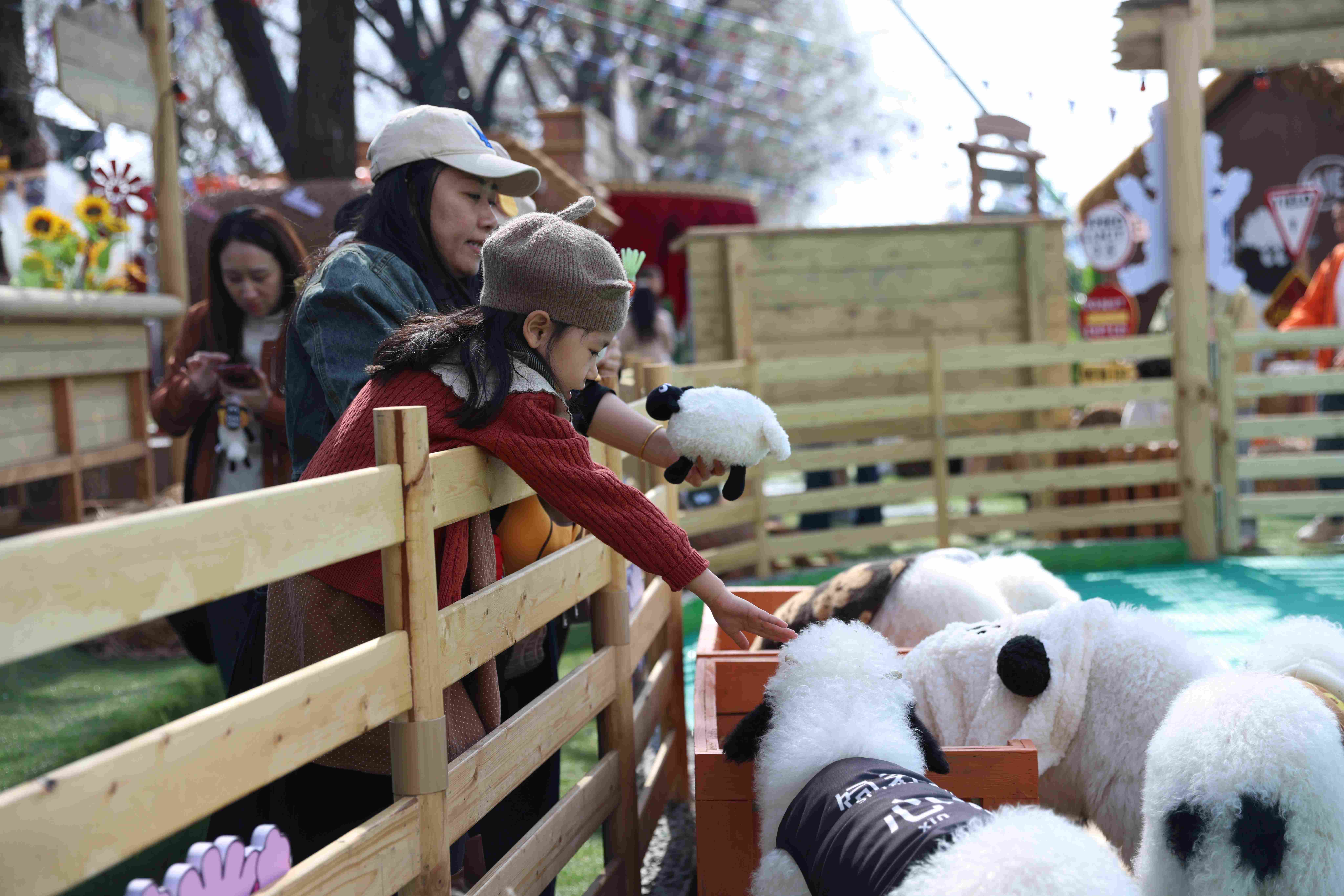 步入咩咩农场入口,欢快的田园气息扑面而来。整个农场布局错落有致,精心划分为沉浸式牧场体验区、文创市集区、休闲拍照区、宠物友好区及游乐互动区等多元场景。在牧场体验区,憨态可掬的瓦莱黑鼻羊与活泼亲人的尼日利亚矮山羊成为绝对主角,游客可近距离互动,在都市一角体验原汁原味的牧场生活。农场内还散落着50余处精心设计的休闲拍照点位,从美式酒吧到印第安风插画墙,随手一拍皆是异域系大片,让大朋友和小朋友都能重温简单纯粹的快乐。
