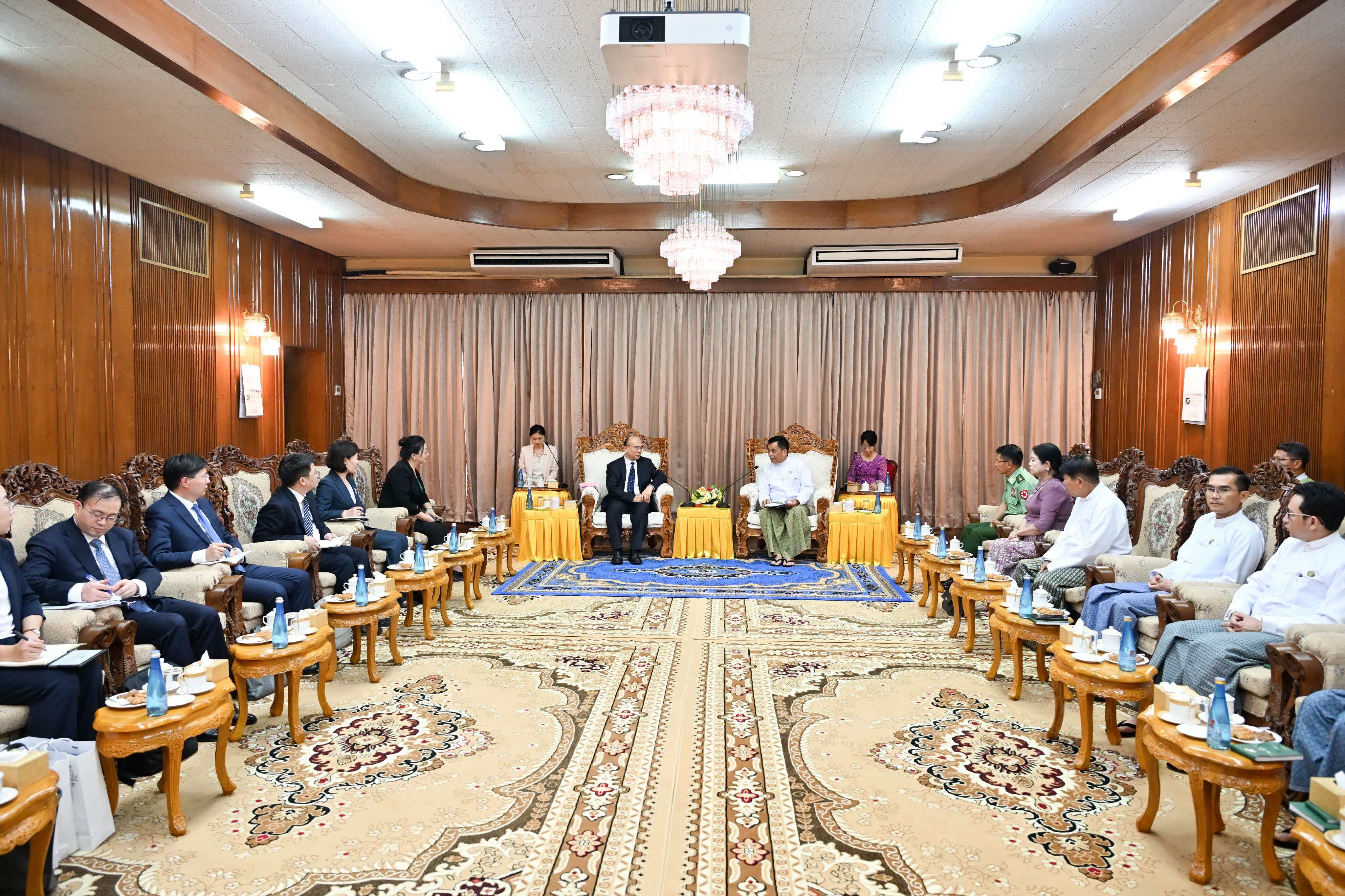 许勤会见仰光省首席部长昂乃都。