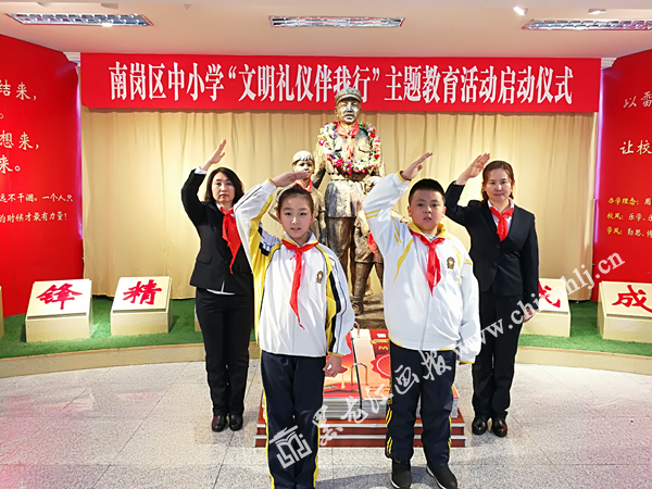 黑龙江画报3月5日讯(记者 宋菲)今日,哈市中小学生新学期开学第一天,也是毛主席题词向雷锋同志学习55周年纪念日。作为我省唯一一所以雷锋名字命名的学校,哈尔滨市雷锋小学每年在“学习雷锋纪念日”,都会开展学雷锋主题纪念活动。与往年不同,在今年的纪念日中,南岗区中小学“文明礼仪伴我行”主题教育活动启动仪式在哈尔滨市雷锋小学召开。哈尔滨市雷锋小学向全区中小学生发出倡议:做文明守礼“小雷锋”。