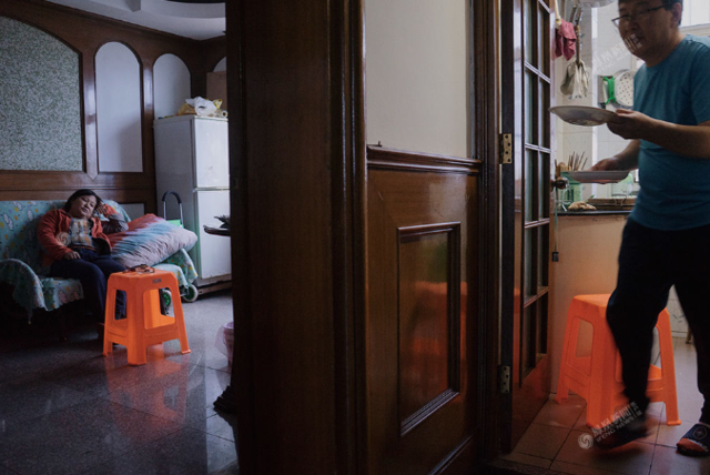 水蒸气弥漫整个狭小的浴室,孙素林得以大口地呼吸,鼻腔里的温暖与湿润对他们弥足珍贵。“魏则西事件“两年整,孙素林起诉百度侵权的案子被海淀法院正式立案,这是国内首例虚假医疗广告受害者起诉百度正式立案开庭的案子。四年前,孙素林因“空鼻症”窒息摔倒在街头,四年间,她从抑郁、寻死,到勇敢面对病魔,为病友打气,并与给她带来苦难的公司与机构抗争。“空鼻症”在国内医学界尚存争议,被多方“回避”,但孙素林没有放弃自己,与丈夫陶杰一起走上自救之路。摄影:郑新洽(部分图片由孙素林夫妇提供)