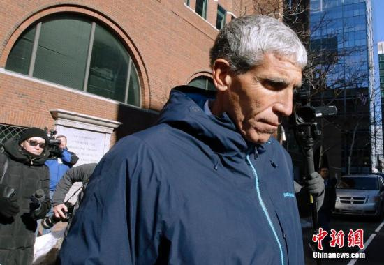 资料图:当地时间3月12日,美国波士顿联邦法院外,美国知名高校的招生欺诈案事件当事人威廉·辛格现身。
