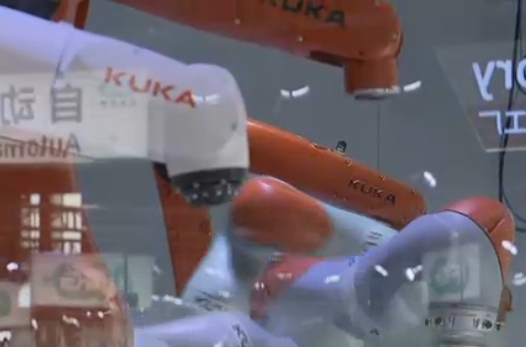 在智能及高端装备展区,备受瞩目的莱昂纳多AW189直升机,已完成螺旋桨安装,以完整的姿态呈现在展台上。尖端技术的动态展示,是该展区参展企业的也主流表现方式。工业机器人龙头企业库卡的展台,摆上了整条未来概念的"智慧工厂"生产线,工程师们正在进行最后调试。