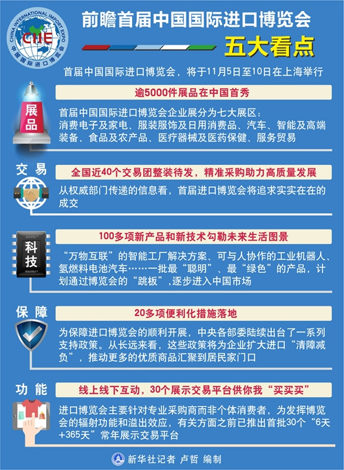 图表:前瞻首届中国国际进口博览会五大看点 新华社记者 卢哲 编制