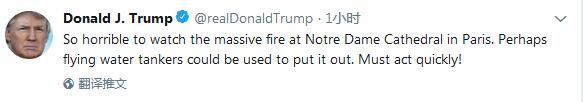 美国总统特朗普也对这座历史悠久的大教堂出现的火灾感到遗憾,他在推文中表示:“巴黎巴黎圣母院的严重火灾真是太可怕了,也许可以进行空中洒水灭火。现在必须迅速采取行动!”