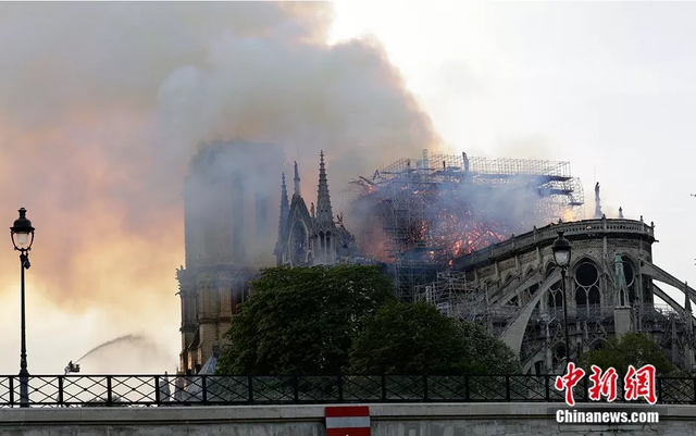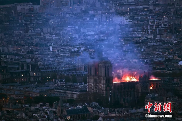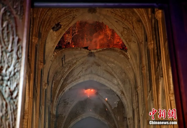 大火后的穹顶,巴黎圣母院穹顶在大火中燃烧。