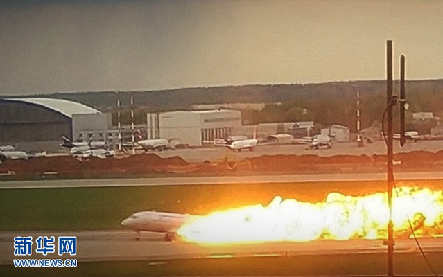 俄罗斯一客机起火:5月5日,一架客机在俄罗斯首都莫斯科谢列梅捷沃机场迫降。新华社发(谢尔盖摄)