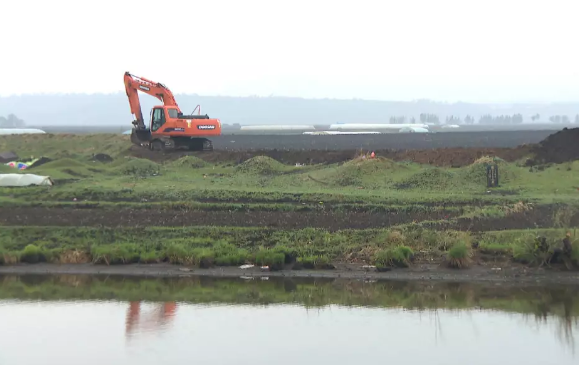 在松花江依兰县达连河镇段,有一处违法私建的鱼塘,圈占面积5000平方米,修筑堤坝18道,总长度在5000米以上。现在正是枯水期,当地抓紧施工,拆掉围堤,疏通河道,恢复自然状态。