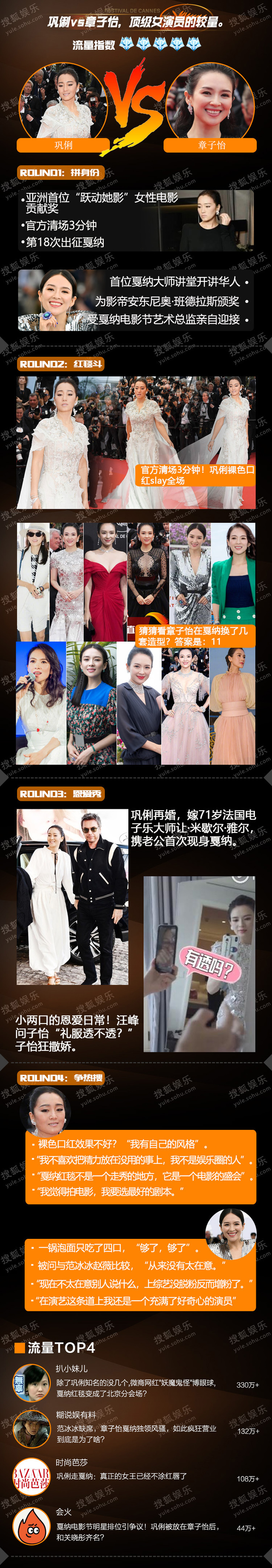 红毯外,两位女演员和另一半恩爱秀不停。巩俐再嫁71岁法国音乐家,巩皇在他面前变成了小女人;汪峰虽然不在子怡身旁,小两口日常的甜腻却没有缺席;顶级女演员,话题度只高不下,话刚出口就要上热搜。身份上两人都是戛纳重量级的嘉宾,巩俐第18次出征戛纳,红毯上获得官方清场3分钟,获得“跃动她影”电影贡献奖;子怡更是厉害,是首位在大师班开讲的华人,最后还为影帝颁了奖。两个顶级女演员间的角力,火花四溅!
