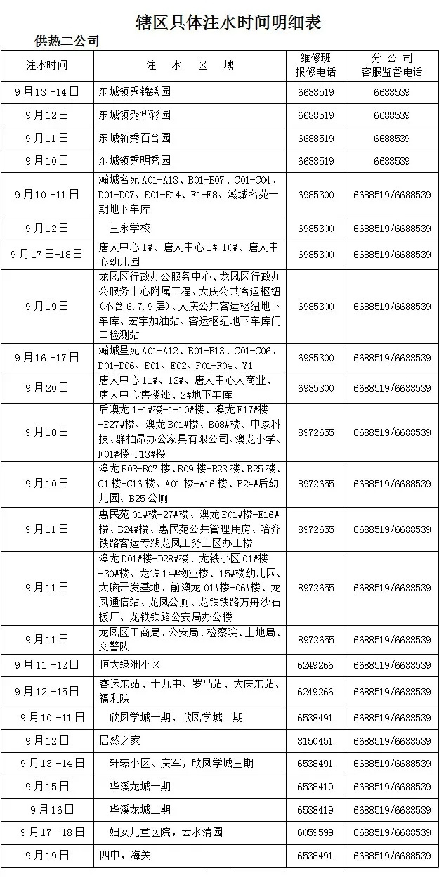 日新供热公司信访电话:纯水岸6138283、金色世家6108383