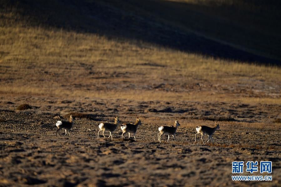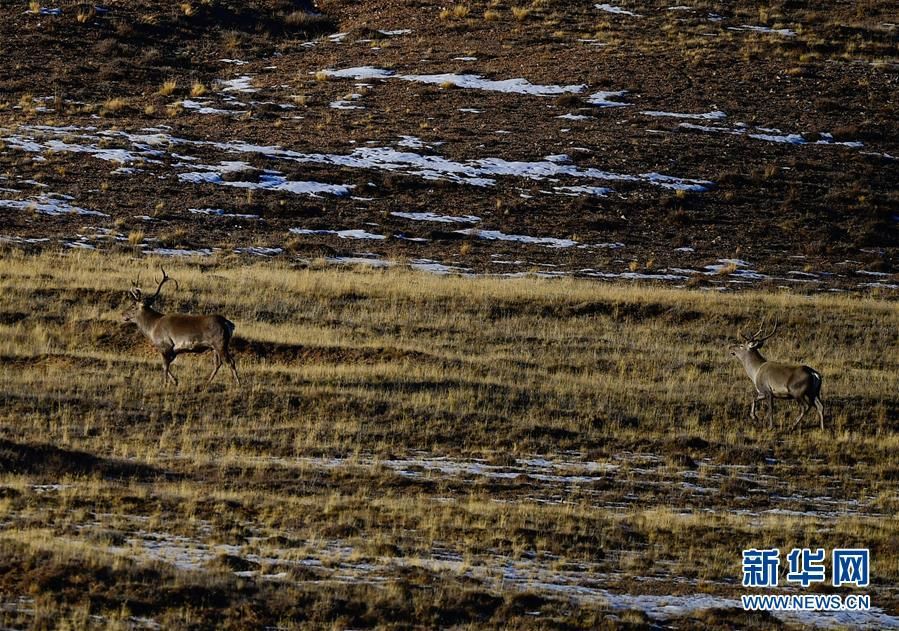 11月9日,两只藏原羚在青海玛沁县境内的草原上活动。