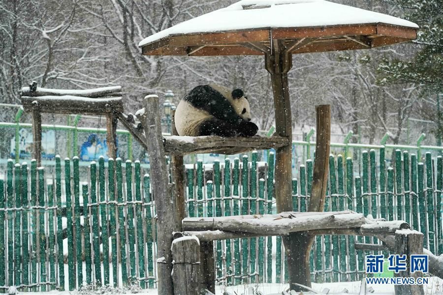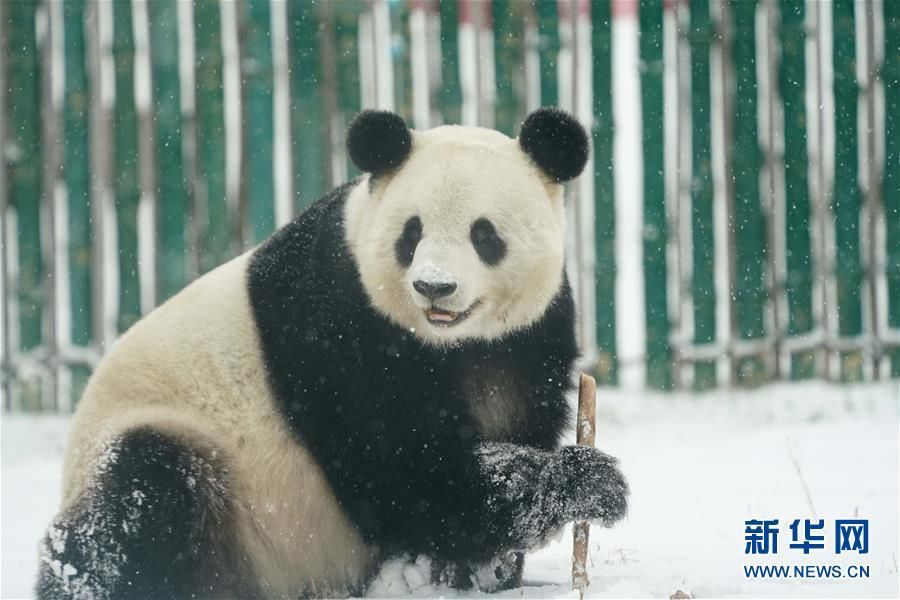 11月13日,大熊猫思嘉在熊猫馆室外场馆活动。 当日,黑龙江省部分地区出现明显降雪天气,在黑龙江生活的大熊猫思嘉迎来了又一个“雪季”,思嘉在雪地中边吃边玩,萌态十足。 饲养员说,大熊猫很喜欢下雪天气,目前中午气温在零摄氏度左右,它们在室外活动不受影响;若气温低于零下20摄氏度,工作人员会减少它们在室外活动的时间。 大熊猫思嘉2006年8月12日出生于四川卧龙中国大熊猫保护研究中心,2016年7月5日被空运至位于黑龙江省的中国亚布力熊猫馆饲养至今。 新华社记者 王松 摄
