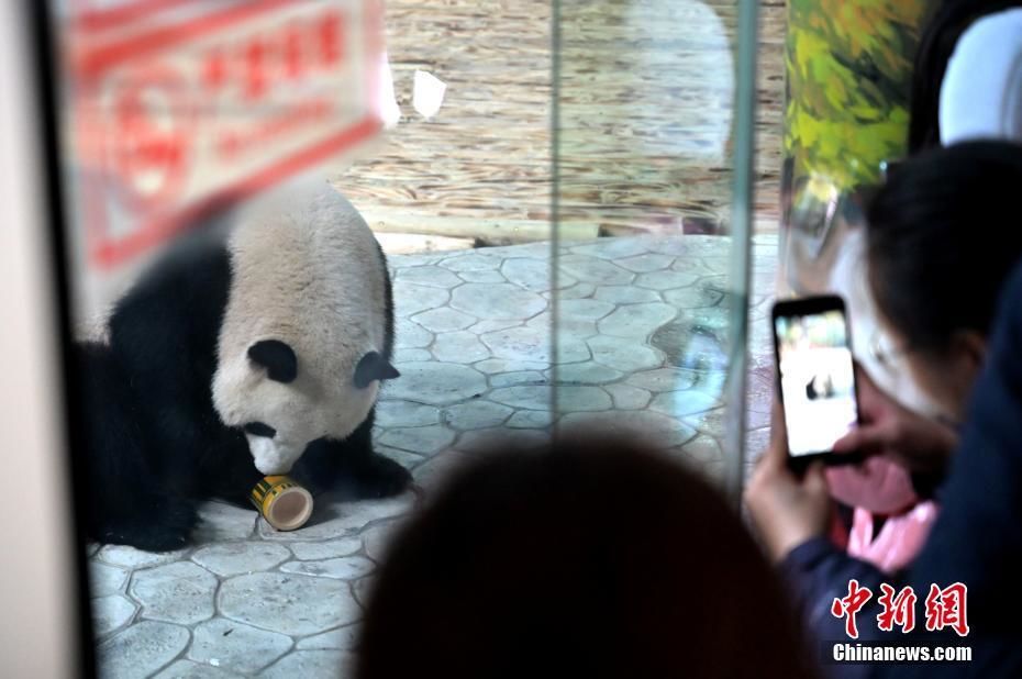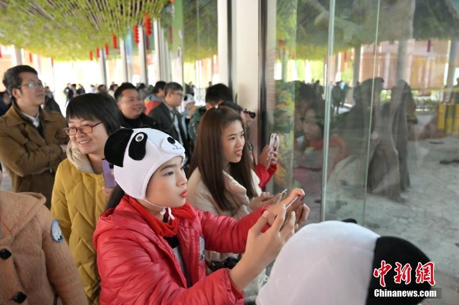 1月15日,大熊猫保护教育科普系列活动暨大熊猫苑开放仪式在南宁市动物园举行,来自成都大熊猫繁育研究基地的熊猫兄妹“绩美”和“绩兰”在大熊猫苑内正式亮相。熊猫兄妹俩出生于2016年6月27日,其父亲是成都首只旅美归国的明星大熊猫“美兰”,母亲是“绩丽”。熊猫哥哥“绩美”活泼好动,妹妹“绩兰”羞涩可爱。据了解,南宁市动物园大熊猫苑总面积达8360.42平方米,含熊猫活动场所、沉浸式智慧体验室、科普体验室等多个区域,向民众展示“国宝”熊猫的生活起居。图为熊猫哥哥“绩美”尽显吃货本色。 俞靖 摄