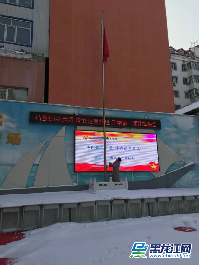 黑龙江网3月2日讯(记者 白林鹤)今天早上,在哈尔滨市铁岭小学校三个校区的操场上,伴随着雄壮的国歌,三面鲜艳的五星红旗冉冉升起,全校师生、学生家长在家中穿戴整齐面向国旗高唱国歌,用这样的方式致敬前方的英雄,致敬伟大的祖国。同时,线上开学第一课暨“待到春花烂漫 你我逐梦共远” 姚颖校长第一堂思政课正式开启。