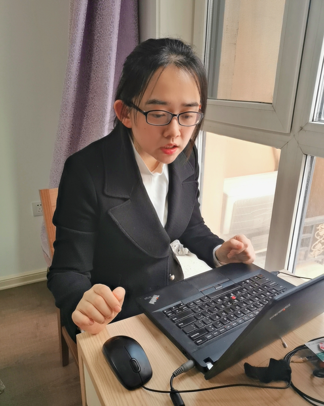 除了设备调试外,王妍还要做好情感心理准备。第一次与学生见面的会议模式,王妍采用屏幕共享,让每一个学生的形象在屏幕上出现,并鼓励同学们和大家打招呼,个别假期长胖的同学,王妍还跟他们开起了玩笑,长达两个月不见的陌生与矜持,被这种轻松的氛围打破了;第三次试播时,王妍因操作失误,在未开启直播模式的前提下,自己“直播”了10分钟,及时发现后,在全员进入直播间时,她给学生讲了自己刚刚犯的这个小错误,学生们都在屏幕前被逗得哈哈大笑。“我在用自己的行动告诉孩子们,我和他们一样,一起在适应和成长,我们一起并肩起跑,所以请孩子们不要着急和焦虑,老师一直陪在你们的身边。”王妍说。