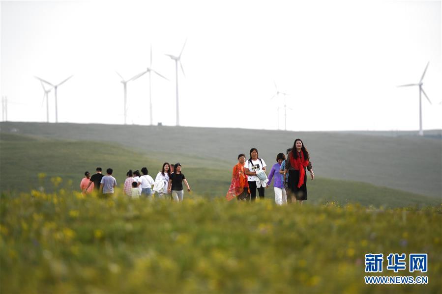盛夏时节,辉腾锡勒(黄花沟)草原旅游区鲜花盛开,郁郁葱葱,一派迷人景象。