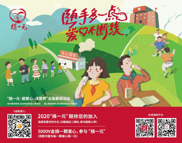 据了解,“捐一元·献爱心·送营养”项目是由百胜中国携手中国扶贫基金会于2008年发起,旨在为贫困地区孩子提供持续的营养补助。“捐一元”项目主要通过百胜中国旗下遍布全国的品牌餐厅和相关的网络订餐系统向社会募捐,倡议全社会一人捐出一份爱心,为贫困地区孩子提供营养加餐、为学校捐赠爱心厨房设备。项目于2019年开始增加电教室捐赠、为学校引入远程编程课教学,希望在营养、知识等多方面助力孩子茁壮成长。