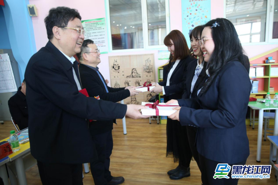 13时许,大庆市直属机关第二小学益智教育研究五年回顾短片《益智课程落地生根 文化建设处处开花》及学生们进行的“益智生辉,乐享童年”思维赛题小课堂主题展示拉开了“随名师前行,创智慧课堂”中国教科院培训中心与大庆市直机关二小高端引领拜师仪式的序幕。学校5位教师分别与中国教科院研究员李嘉骏教授、中国教科院培训中心科研部陈亚明主任结下师徒对子。李嘉骏教授表示,做学问,要肯吃苦,静心做事,踏实做人,激发学生的灵性与悟性,做幸福教师。陈亚明主任则希望几位徒弟要把握“小课堂,大智慧”的思想,做到“三大”“三智”“三慧”,真正使自己和学生聪慧起来。