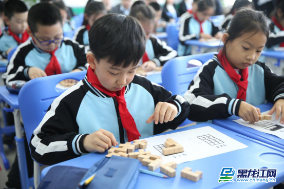 拜师仪式结束后,郑秋萍老师和郑小颖老师分别执教《十二巧块》、《巧放方形》两节课,与学生们和“师傅”一起探索益智课堂。在《十二巧块》课上,郑秋萍老师通过三个层层深入的活动设计,引领学生经历观察,探索的过程,充分感知排除法和有序思考,培养了学生发 散性思维能力,发展了学生的空间观念。