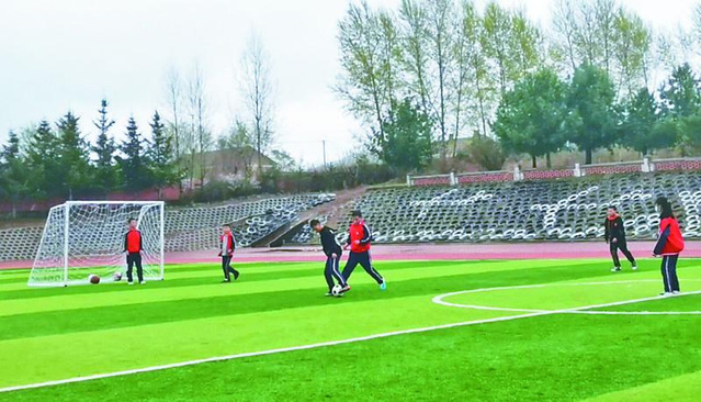 六年级的女孩刘淼是半年前参加足球队的,喜爱足球的她,每天6点钟从家徒步半个小时赶到学校,参加足球队的晨练,风雪无阻。每天她还要利用午休时间和下午的最后一节课时间,参加足球训练。