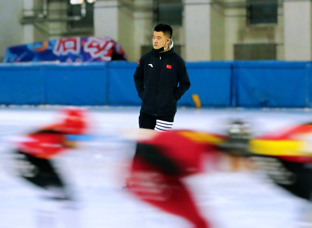 3月26日,在牡丹江市北山滑冰馆平滑如镜的冰面上,伴随着回响在馆内严厉的声音,18名年轻男女短道速滑运动员正绕场疾行,身后留下一道道白色印痕、溅起晶莹剔透的冰花。