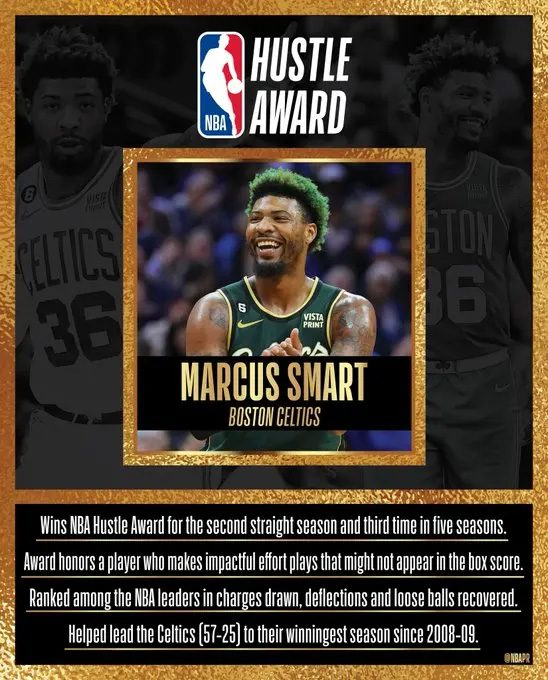 央视网消息:北京时间5月5日,NBA官方宣布,凯尔特人后卫马库斯-斯马特荣膺本赛季的最佳拼搏奖,这已经是他连续第二年获此殊荣,同时也是他近五年来第三次获得这一奖项。