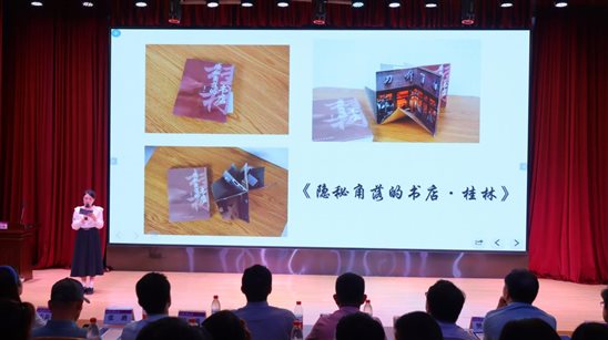 总决赛现场,H5类作品《他们的故事——独秀学人录》的原创绘制插图体现了扎实的设计创作能力,以三校区图书馆、紫荆花和桂林山水等较为有代表性的元素为背景,插入动画的形式,形象地展现书籍《独秀学人录》的内容和故事,向九十周年的师大献礼;视频类作品《公狼乔治的一家》采用“故事+二维动画”的手法将硬核科普轻松化,把《与狼共度》里北美灰狼的生活习性编排成小故事,通过通俗易懂、活泼有趣的影音向观众传递狼的温情,达到微科普的效果;摄影类作品《回乡记》以老家独具代表性的老物件或场景为切入点,九张组图都以书籍为主体拍摄书影,注重光影的运用,体现出农村生活气息,再现《回乡记》中的乡村情景,唤醒了读者对家乡的牵挂与记忆。最终,《在桂林遇见书店》《“定”出宋词里的4种人间至情》《我有一只叫抑郁症的黑狗》3个作品获一等奖,《关于我的一切》等7个作品获二等奖,《象牙只属于大象:一本献给生命的赞歌》等10个作品获三等奖。
