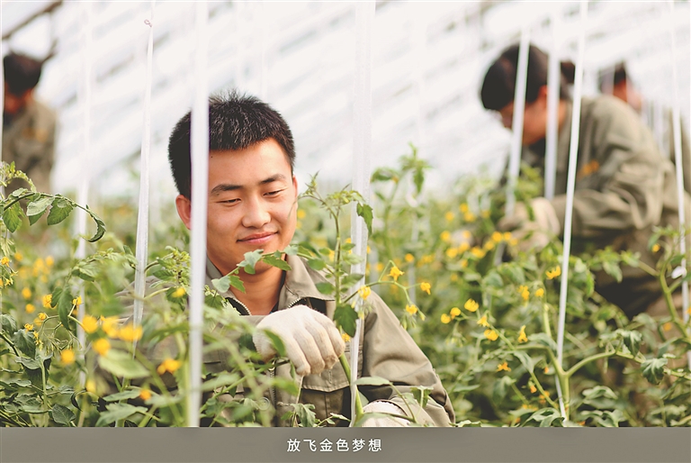 黑龙江农业工程职业学院农机学院设施农业创业团队在北方寒地大学生创业基地温室进行日常养护工作。