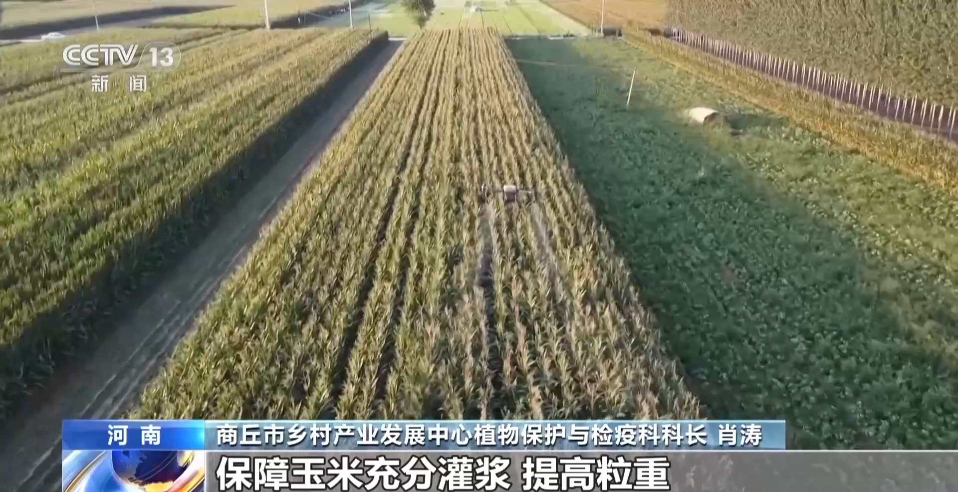商丘市乡村产业发展中心植物保护与检疫科科长 肖涛:当前距离玉米收获的时间还有20天左右,要坚持秋粮一天不到手,管理一天不放松,有水肥一体化条件的地块,可借水追肥,增强根茎叶功能,保障玉米充分灌浆,提高粒重。