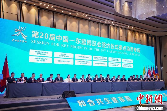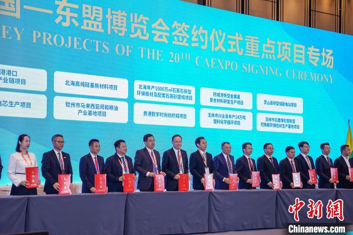9月17日,由中国—东盟博览会组委会主办,广西壮族自治区人民政府承办的第20届中国—东盟博览会(以下简称东博会)签约仪式在广西南宁举行,现场集中签约项目184个,其中投资合作项目170个、国际贸易和“走出去”国外投资项目14个。