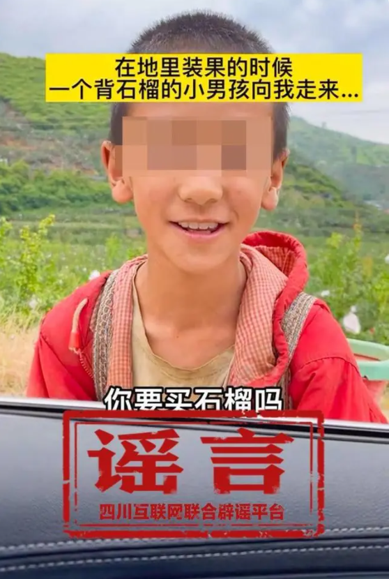 “9岁娃卖石榴”为虚假摆拍视频。 截屏图