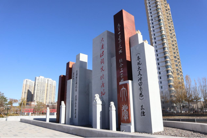 黎明河滨水绿道建设中,融入了大庆历史文化、石油文化、城市文化内涵,打造了建党百年、工业记忆、诗意生活、魅力都市、古生物群落等54个景观节点,充分展现油城魅力,传承城市文化,将城市底蕴与景观设置紧密结合,丰富大庆市水文化,让城市文化在河畔熠熠生辉,激发市民自豪感。