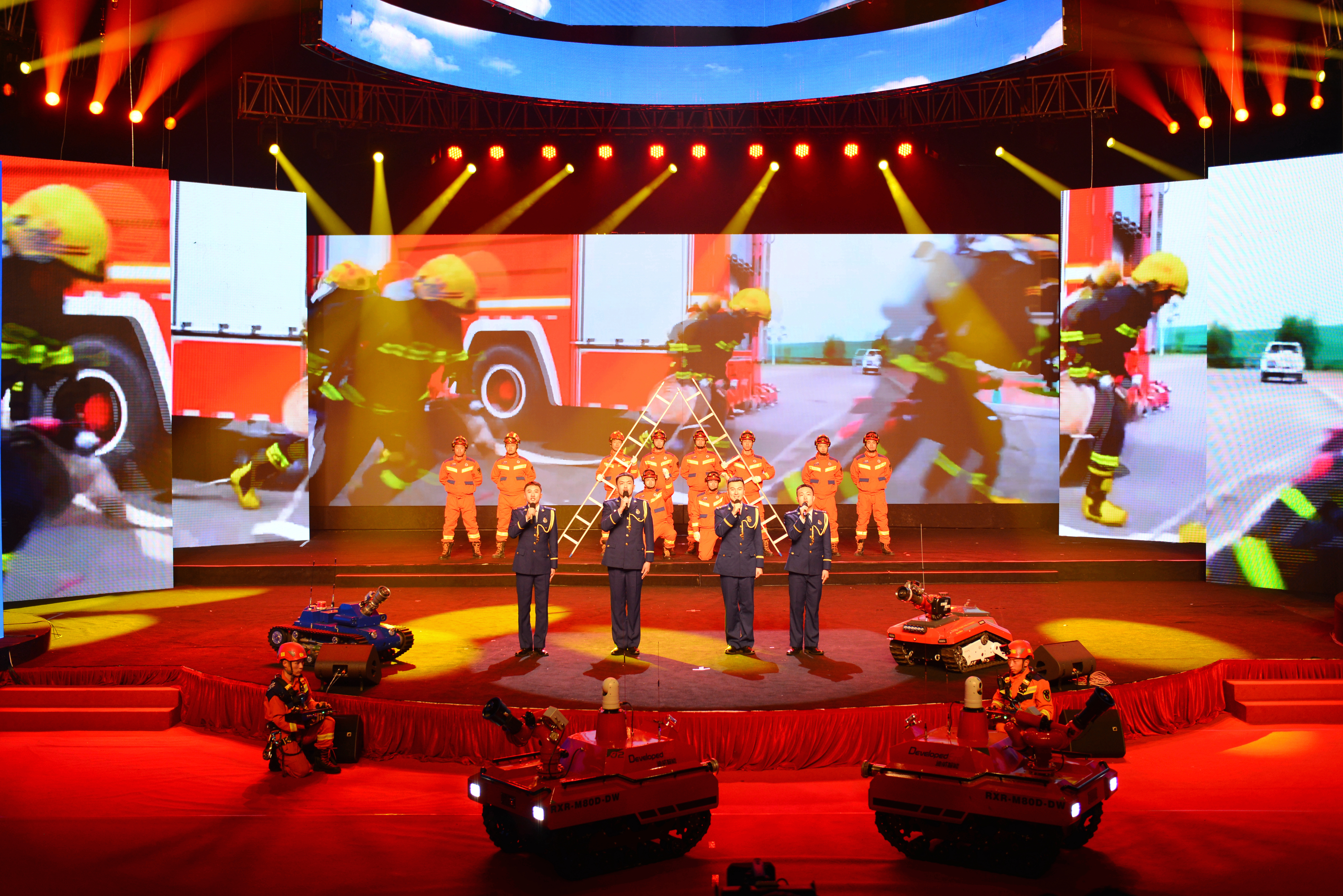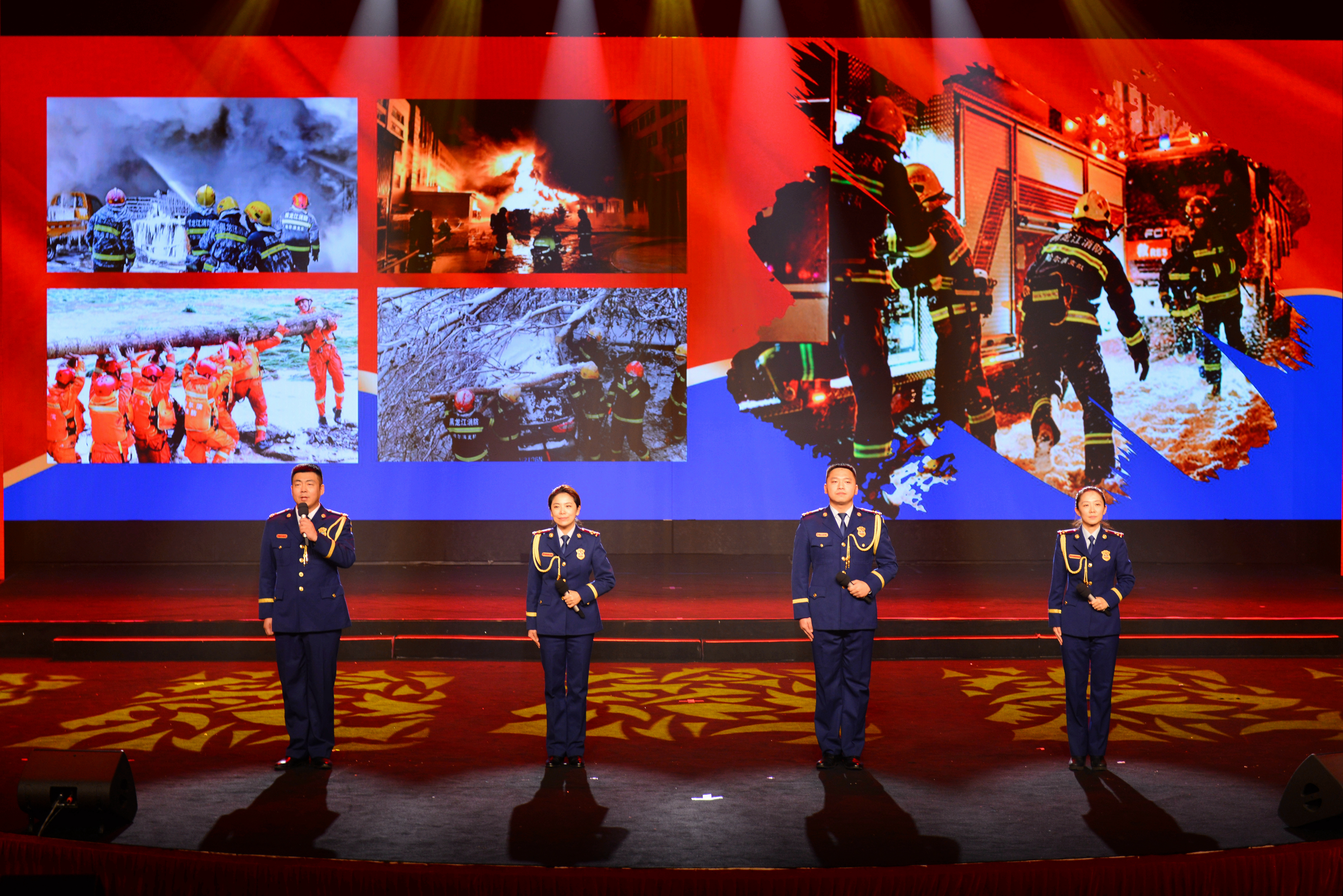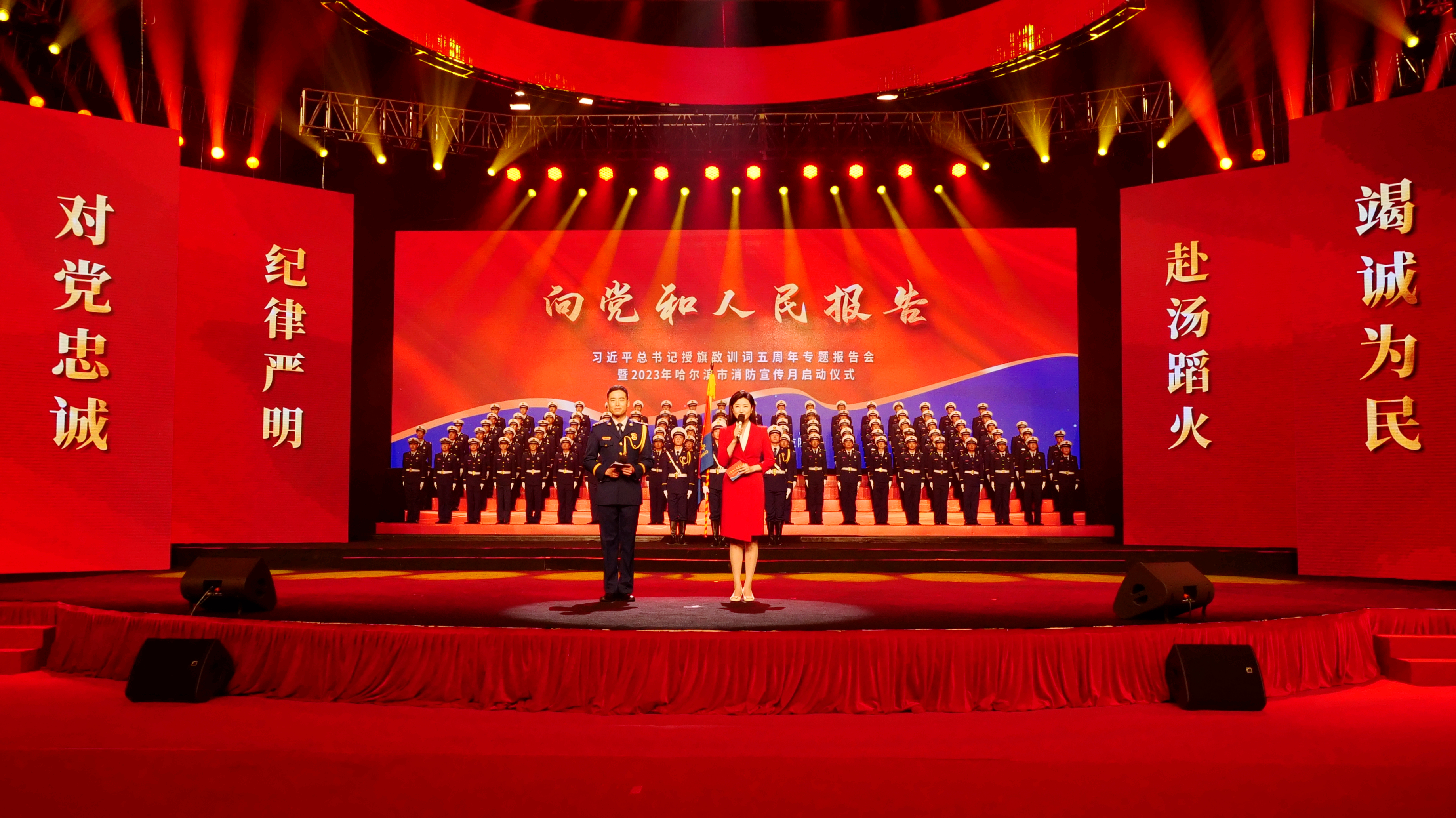 活动中,与会领导共同推起启动杆,启动2023年哈尔滨市消防宣传月开幕。启动仪式以合唱《前进吧,新时代的中国消防》、《鼓舞飞扬》拉开帷幕,歌曲雄浑刚毅,鼓点昂扬有力,体现了新时代中国消防队伍“对党忠诚,纪律严明,赴汤蹈火、竭诚为民”的训词精神。歌曲《渴望光荣》、大型舞蹈《生命之堤》、微型音乐剧《在你身边》、歌曲《逆行者》、情景讲述《无悔的坚守》等节目再现消防指战员主动肩负应对“全灾种、大应急”的使命任务,在“冰城”百姓最需要的紧急关头,救民于水火、给民以力量,24小时守护人民生命财产安全的为民情怀,展现支队消防指战员以党的二十大精神为根本遵循和行动指南,深入贯彻落实习近平总书记重要训词精神,身在最北方,心系党中央,努力打造出一支与国家战略、龙江站位、冰城发展相匹配的综合性消防救援队伍。