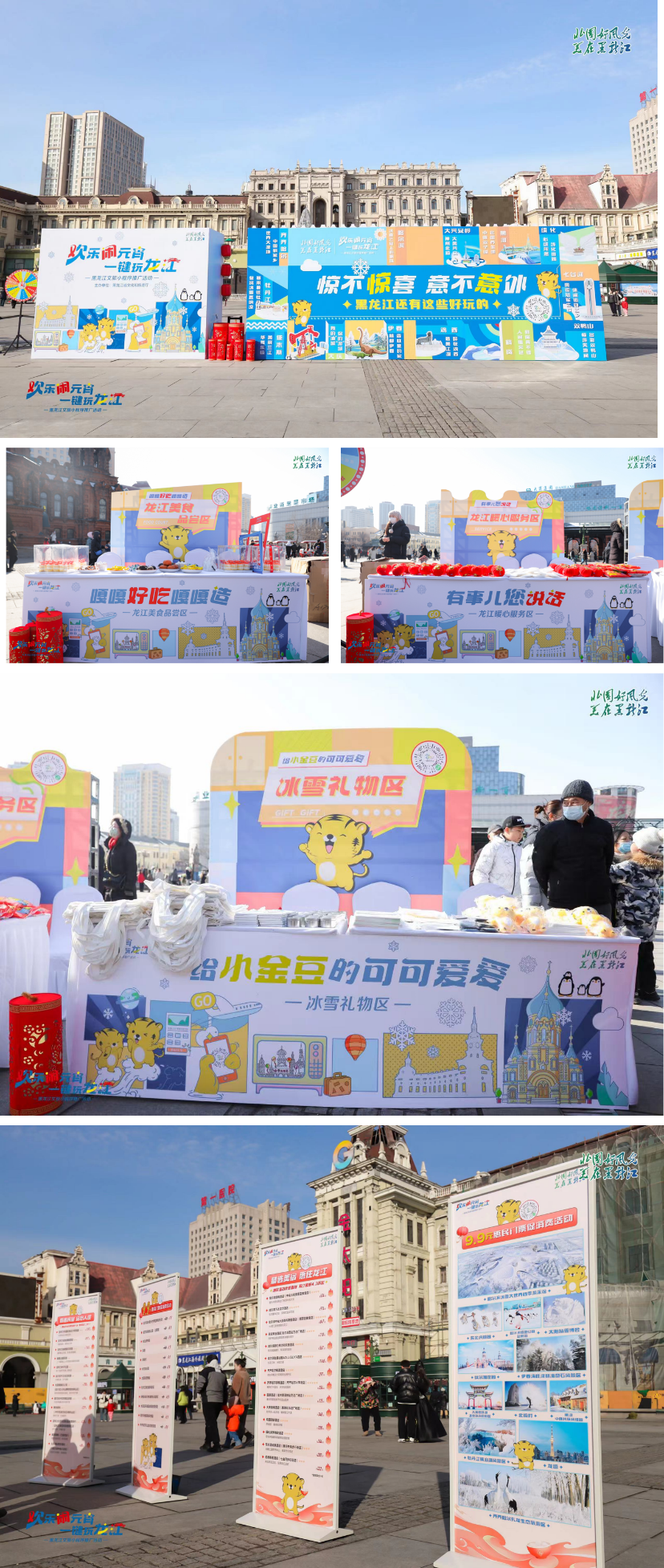 “嘎嘎好吃嘎嘎造”龙江美食品尝区,秋林红肠、格瓦斯饮料、切片冻梨等龙江美味,为游客带来舌尖上的盛宴。还有“给小金豆的可可爱爱”冰雪礼物区、“有事儿您说话”龙江暖心服务区和“外冷内热,燃起来”游客互动区为游客提供独具特色的龙江体验,传递龙江文旅最暖最好玩的心意。