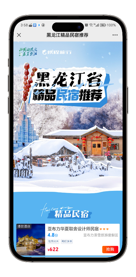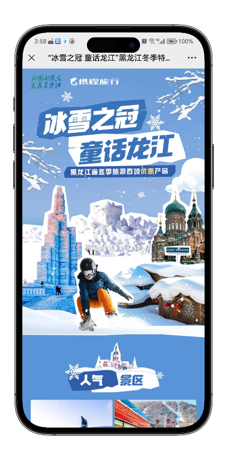 “今年冬季龙江文旅的火热出圈为我们带来了更多的启示和信心,我们希望通过黑龙江文旅小程序的创意推广,增加用户客群,实现精准拉新,让更多游客全面了解黑龙江全域旅游资源、当季龙江旅游特惠产品。”黑龙江省文化旅游厅相关负责人说,让游客尽情享受“智游龙江”,是黑龙江文旅小程序建立的初衷。将预约买票、吃住行游购娱等多元化的旅行场景通过“一键玩龙江”来实现,既可以为企业营销提供平台,又能为本地市民和外地游客提供全方位一站式贴心服务,让更多游客全面了解黑龙江全域旅游资源、当季龙江旅游特惠产品,更好地推进龙江文旅产业发展,让精彩文旅生活“触手可及”。