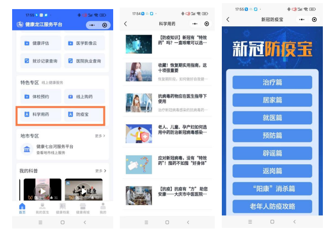 3.科学用药和防疫宝。平台发布抗疫科学用药和科学防疫等主题文章,居民可查询学习。