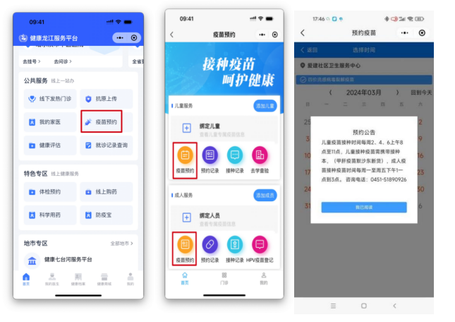 4.疫苗预约。全省1615个疫苗接种点全部上线。居民可查看附近接种点地址和可预约疫苗种类,预约儿童和成人疫苗,查询个人接种记录。