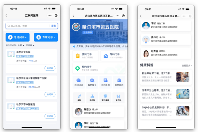 2.互联网医院。通过“互联网医院”功能模块,居民可采用极速问诊、专家问诊的方式进行问诊咨询,也可以通过互联网医院导航功能,查找想要咨询的医院和专科,进行网上问诊、开方。