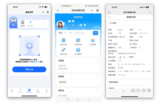 8.健康档案。“健康档案”模块依托于省全民健康信息平台,通过互联互通,实现居民电子健康档案授权查阅。居民通过人脸识别后即可查询个人电子健康档案。