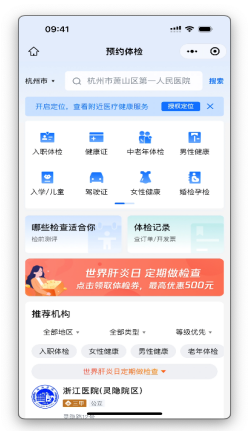 1.体检预约。平台引入第三方体检预约模块,居民可快速进行体检预约。