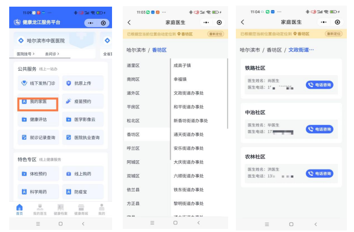 3.我的家医。可自动定位所在地,方便快捷与家庭医生在线沟通交流。