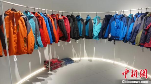 一家冲锋衣企业展示的学生款冲锋衣。中新社记者 傅飞扬 摄